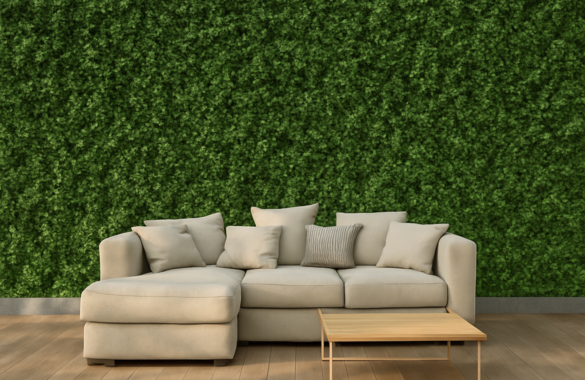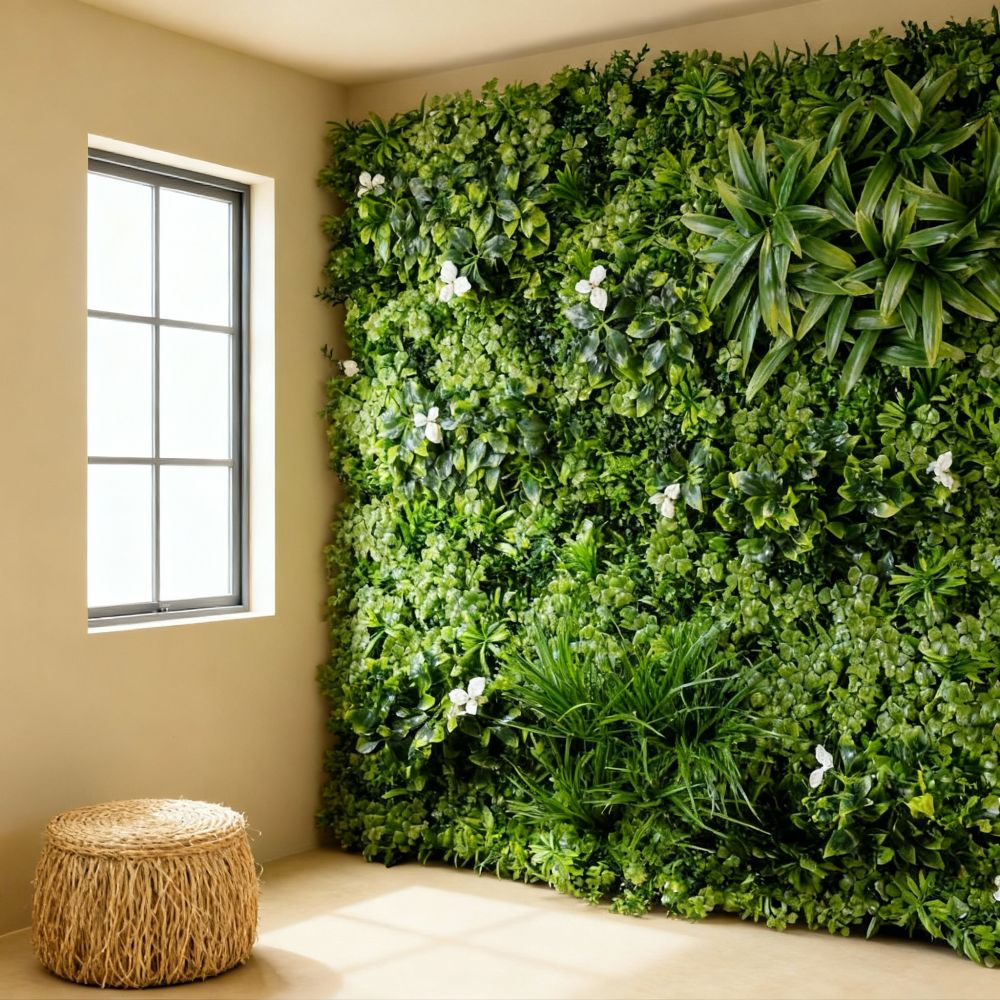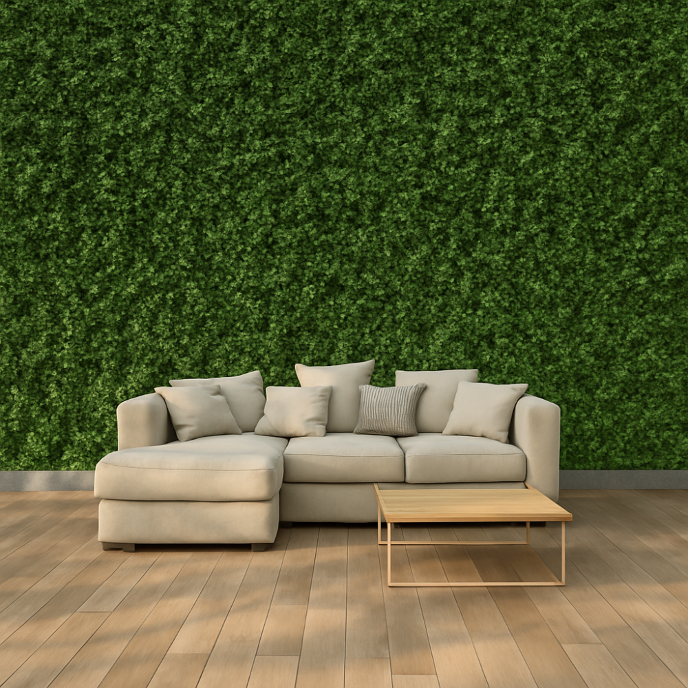Nuestros productos cumplen altos estándares de calidad con materias primas de fuerte estabilidad UV para asegurarnos de su aspecto verde y fresco se mantendrá durante años, permitiendo decorar diferentes rincones sin preocuparte de las condiciones medioambientales y sin ningún mantenimiento.