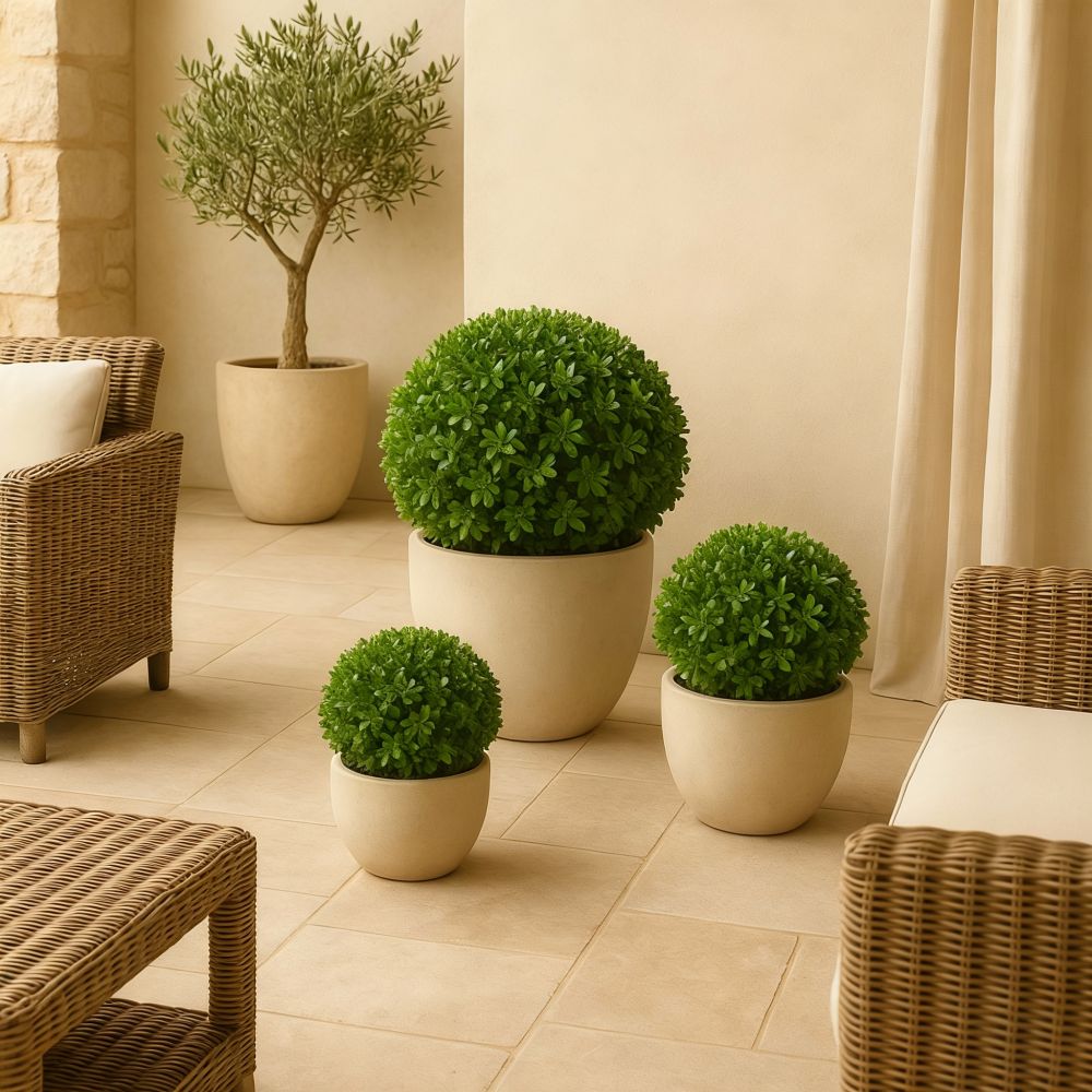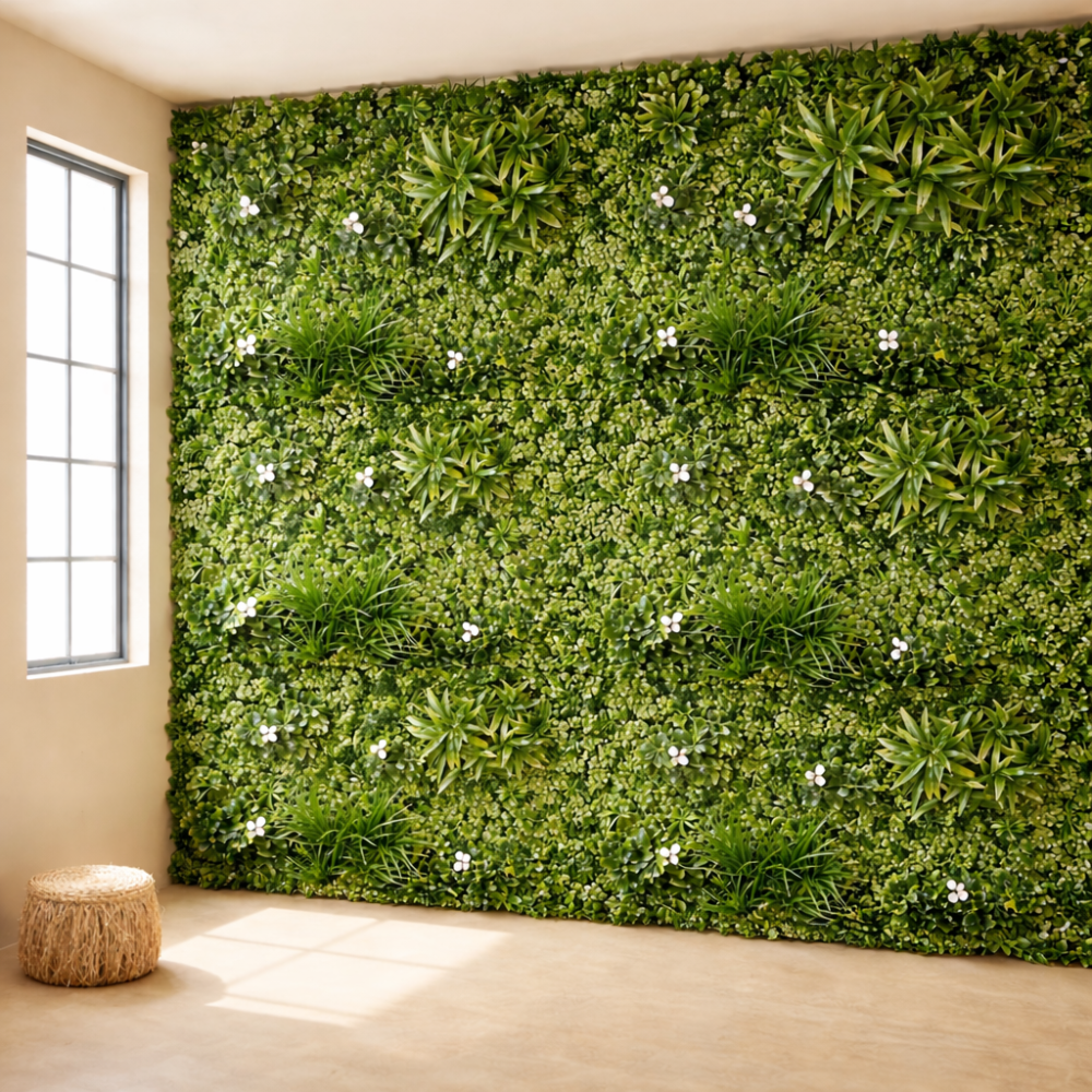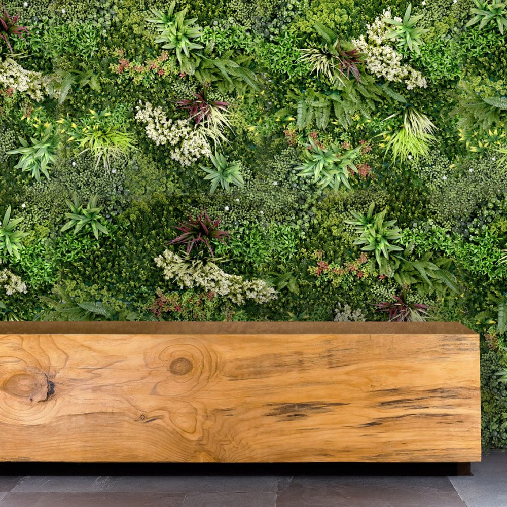 Nuestros productos cumplen altos estándares de calidad con materias primas de fuerte estabilidad UV para asegurarnos de su aspecto verde y fresco se mantendrá durante años, permitiendo decorar diferentes rincones sin preocuparte de las condiciones medioambientales y sin ningún mantenimiento.