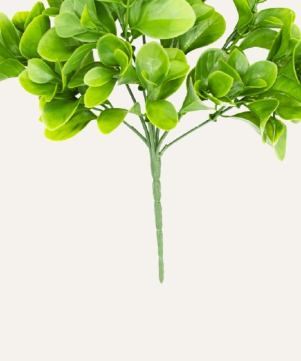 Su estructura resistente mantiene la forma y el volumen de la planta, permitiendo su uso tanto en interiores como en exteriores. Libre de mantenimiento, la peperonia artificial es una solución práctica y estética para oficinas, hoteles, comercios y proyectos contract que buscan vegetación decorativa de alta calidad sin los cuidados asociados a plantas naturales.
