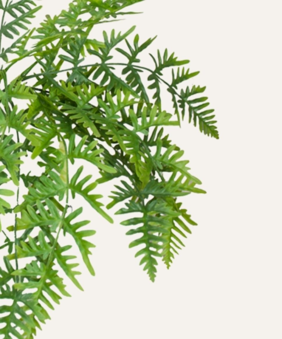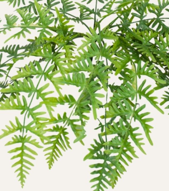 Su estructura resistente garantiza estabilidad y durabilidad, permitiendo su uso en interiores y exteriores protegidos, como oficinas, hoteles, comercios, estanterías o jardines verticales. Libre de mantenimiento, la planta de helecho grande artificial es una solución ideal para proyectos contract y entornos que buscan vegetación decorativa de alta calidad sin los cuidados asociados a plantas naturales.