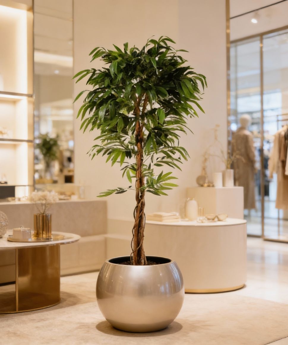 La Dracena artificial de 183 cm, destinada exclusivamente a uso en interiores, destaca por su porte estilizado y su follaje de acabado realista, ofreciendo una presencia elegante y equilibrada en cualquier entorno profesional. Su estructura robusta y libre de mantenimiento garantiza una solución decorativa estable, duradera y visualmente uniforme, ideal para hoteles, oficinas, comercios y proyectos contract que requieren vegetación estética de alta calidad sin asumir costes operativos adicionales.