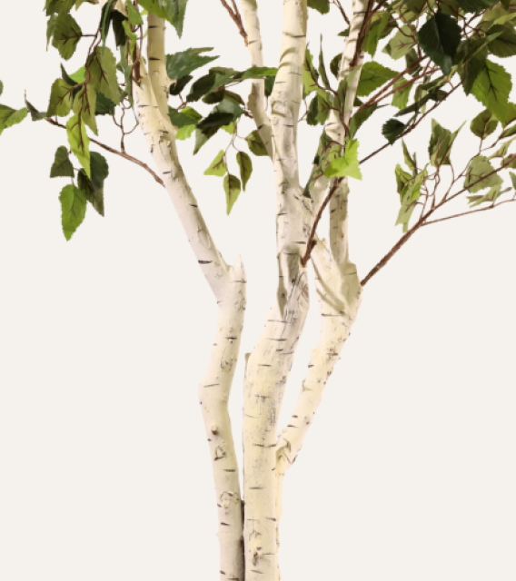Abedul artificial de 210 cm, ignífugo y realista, ideal para aportar elegancia natural y seguridad a espacios profesionales.
