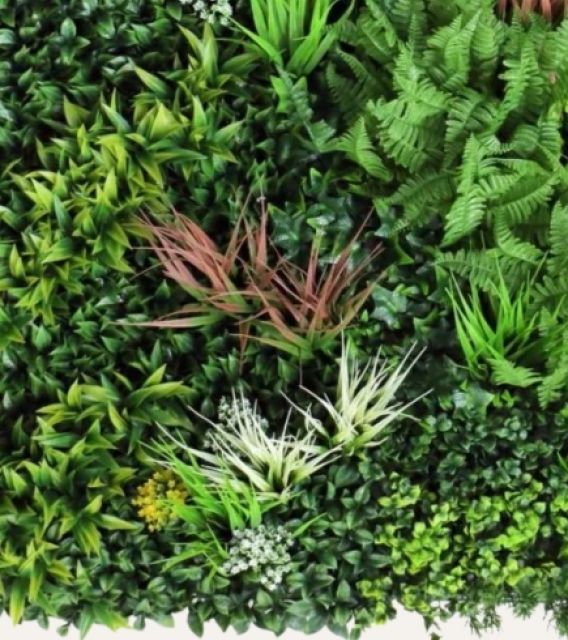 Jardín vertical artificial: verde y moderno, sin riego ni mantenimiento.