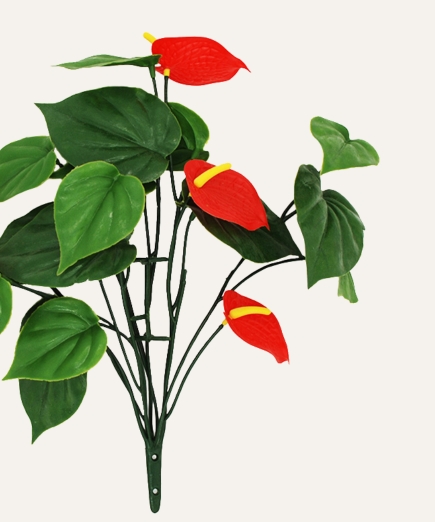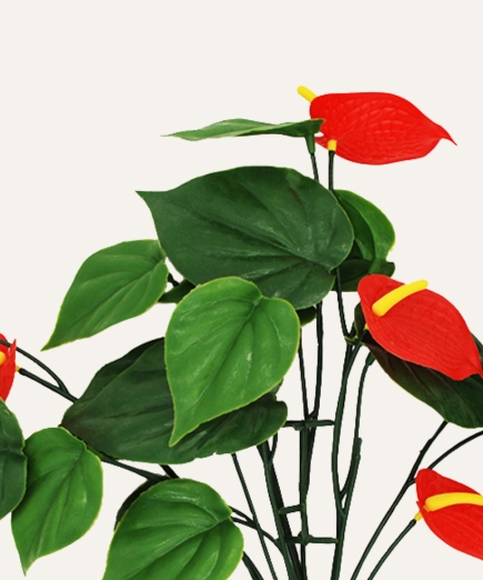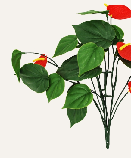 Su estructura resistente mantiene la forma y el porte natural de la planta, permitiendo su uso tanto en interiores como en exteriores. Libre de mantenimiento, el anthurium artificial es una solución duradera y estética para oficinas, hoteles, comercios y proyectos contract que buscan vegetación decorativa de alta calidad sin los cuidados asociados a plantas naturales.