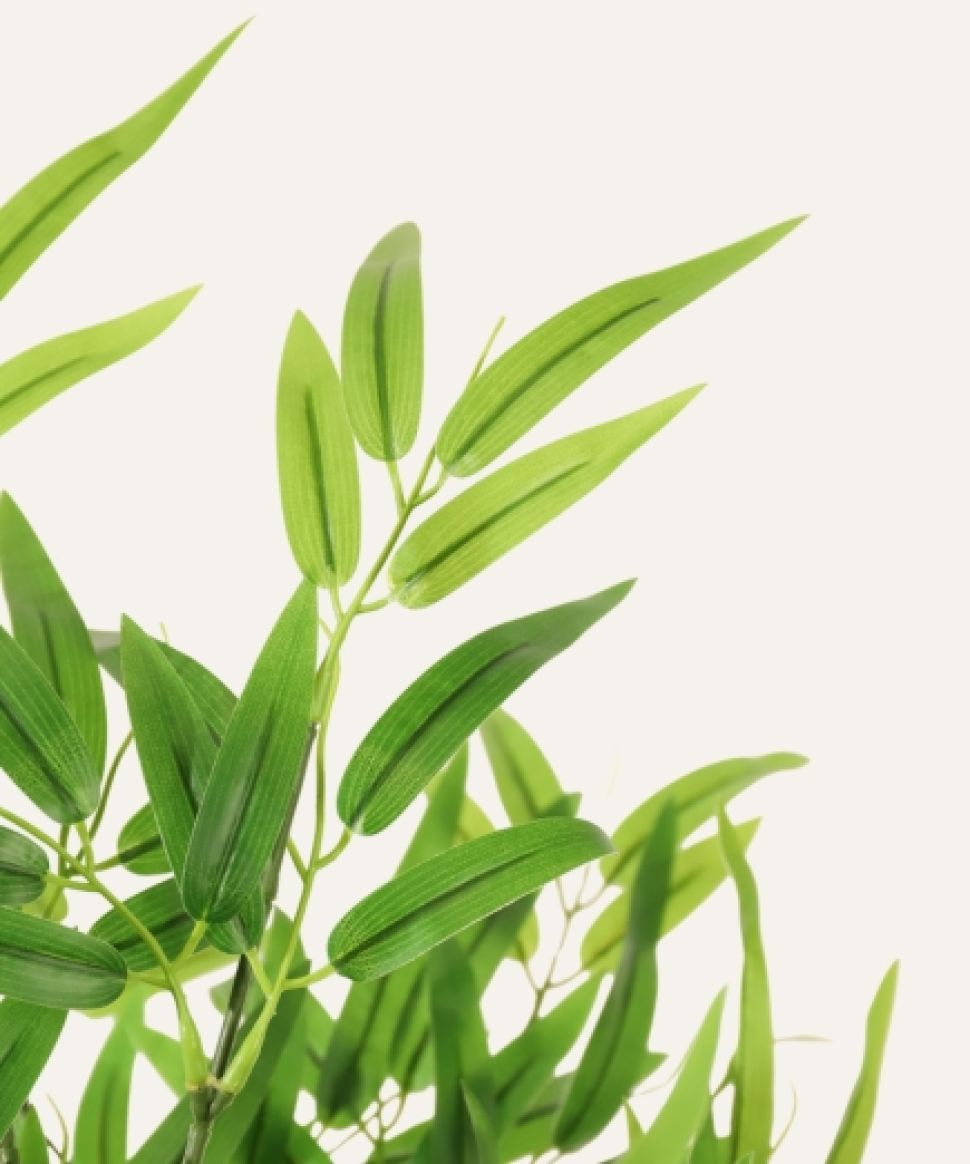 El Bambú artificial de 150 cm, diseñado exclusivamente para uso en interiores, presenta un follaje fino y natural que aporta verticalidad y armonía a cualquier entorno profesional. Su estructura estable y su acabado realista lo convierten en una solución decorativa duradera, ideal para hoteles, oficinas, comercios y proyectos contract que buscan integrar vegetación elegante y uniforme sin asumir costes de mantenimiento ni depender de condiciones ambientales específicas.