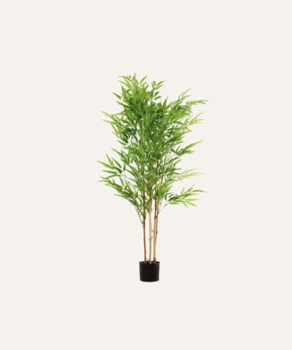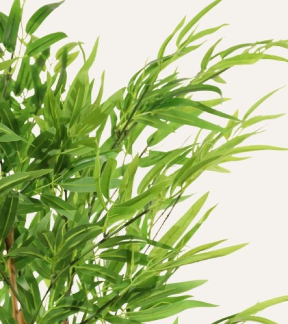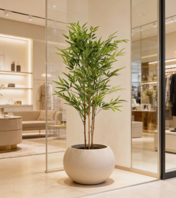 El Bambú artificial de 150 cm, diseñado exclusivamente para uso en interiores, presenta un follaje fino y natural que aporta verticalidad y armonía a cualquier entorno profesional. Su estructura estable y su acabado realista lo convierten en una solución decorativa duradera, ideal para hoteles, oficinas, comercios y proyectos contract que buscan integrar vegetación elegante y uniforme sin asumir costes de mantenimiento ni depender de condiciones ambientales específicas.
