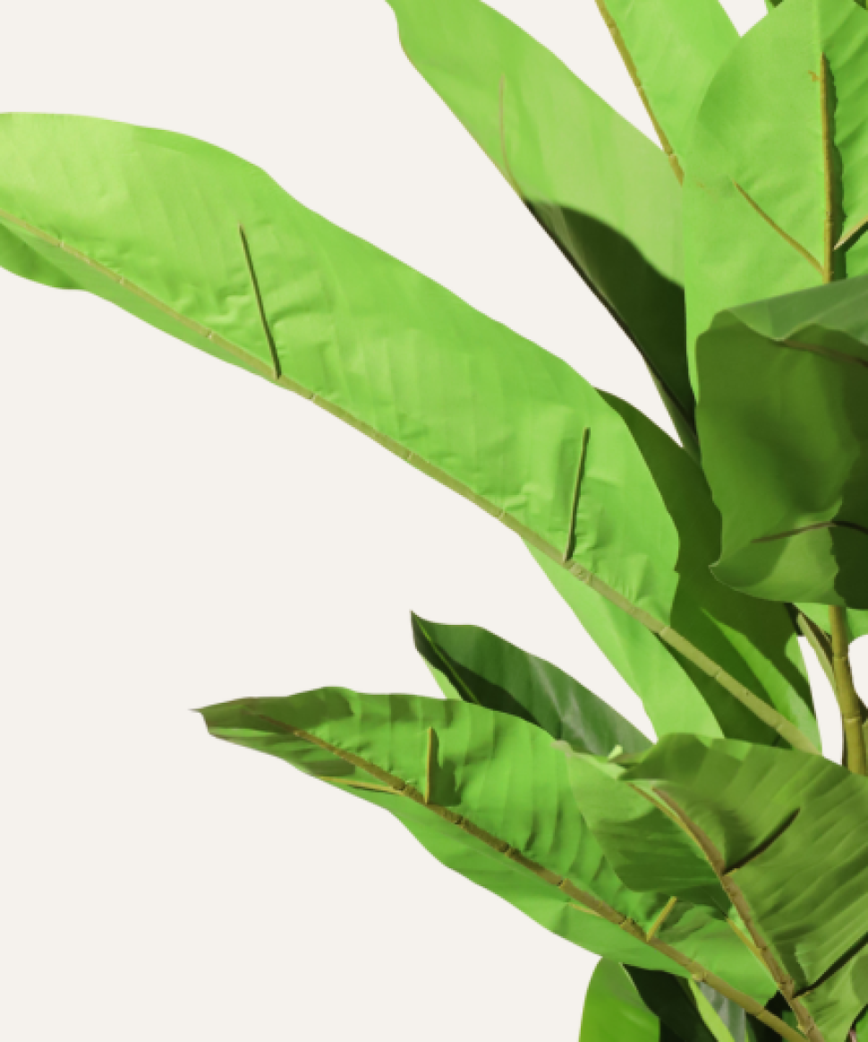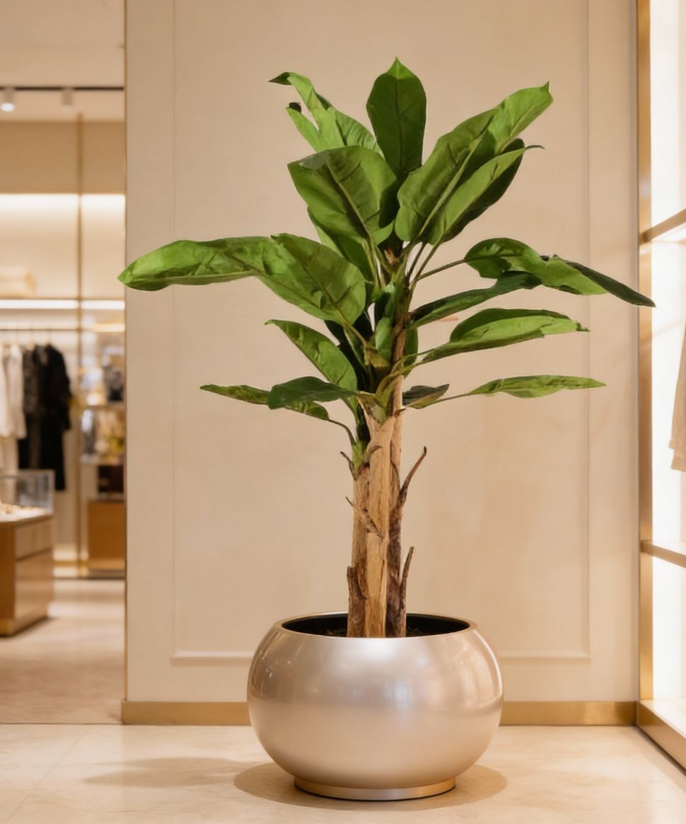 La bananera artificial de 220 cm aporta un toque tropical y elegante a cualquier espacio profesional. Su tronco realista y su frondoso follaje reproducen con precisión la silueta de una bananera auténtica, ofreciendo un efecto decorativo sofisticado. Fabricada con material ignífugo de alta calidad, cumple con los estándares de seguridad más exigentes, siendo ideal para oficinas, hoteles, restaurantes y proyectos de interiorismo corporativo. Su estructura resistente garantiza estabilidad, mientras que su mantenimiento es nulo, conservando siempre un aspecto impecable. Esta bananera combina estilo, seguridad y funcionalidad, convirtiéndose en una pieza decorativa versátil y de alto nivel para entornos profesionales.