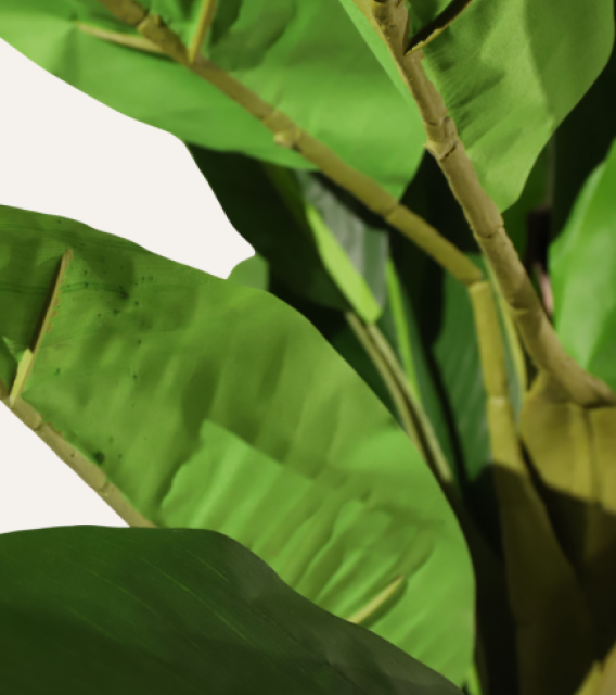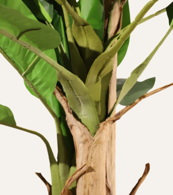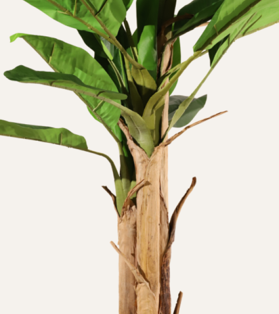 Bananera artificial de 220 cm, ignífuga y realista, ideal para aportar un toque tropical y elegante a espacios profesionales.