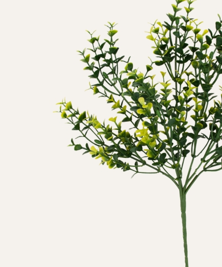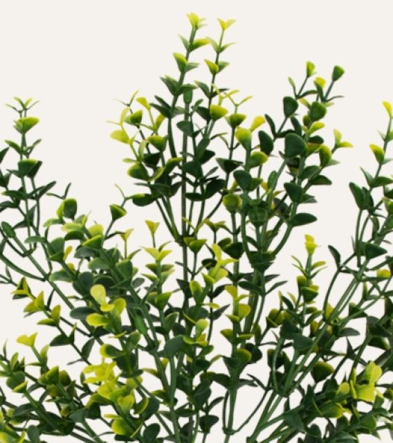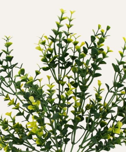 Su estructura resistente mantiene la forma densa y uniforme característica del boj, permitiendo su uso en interiores y exteriores protegidos, como oficinas, hoteles, comercios, recepciones o proyectos contract. Libre de mantenimiento, el boj amarillo artificial es una solución duradera y estética para proyectos que buscan vegetación decorativa de alta calidad sin los cuidados asociados a plantas naturales.
