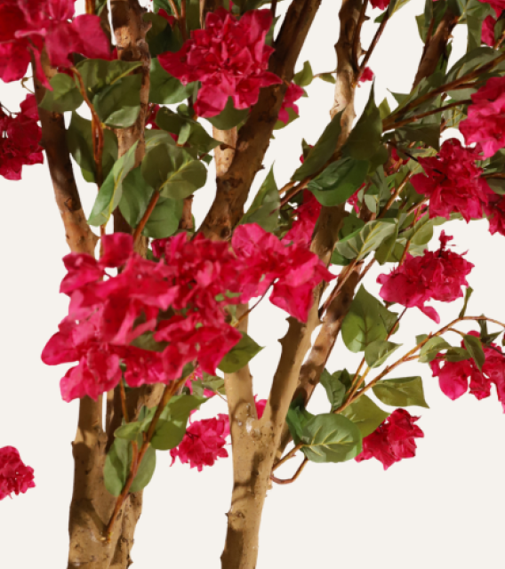 Este majestuoso árbol de buganvilla rosa de 250 cm es una pieza decorativa que combina realismo, elegancia y un toque tropical en cualquier espacio. Su tronco natural aporta autenticidad, mientras que sus flores y hojas de un delicado rosa están diseñadas con gran detalle para replicar la belleza de la buganvilla real. Además, su material ignífugo ofrece mayor seguridad sin sacrificar estilo. Ideal para interiores amplios, hoteles, restaurantes o espacios comerciales que buscan una decoración vibrante, sofisticada y sin mantenimiento, manteniendo su encanto todo el año.