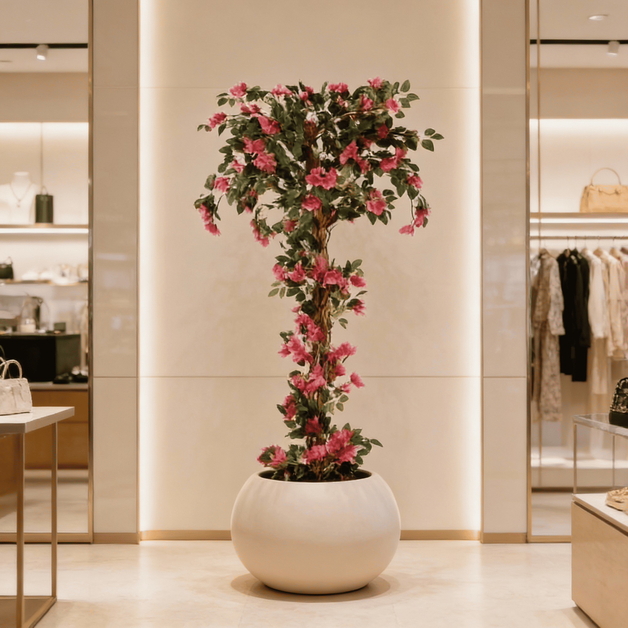 La Buganvilla trenzada artificial de 185 cm, diseñada exclusivamente para uso en interiores, combina un tronco trenzado de apariencia natural con un follaje y flores de acabado realista que aportan elegancia y un toque distintivo a espacios profesionales. Su construcción robusta y libre de mantenimiento garantiza durabilidad y uniformidad estética, convirtiéndola en una solución ideal para hoteles, oficinas, comercios y proyectos contract que requieren vegetación decorativa de alta calidad sin los costes operativos asociados al cuidado natural.