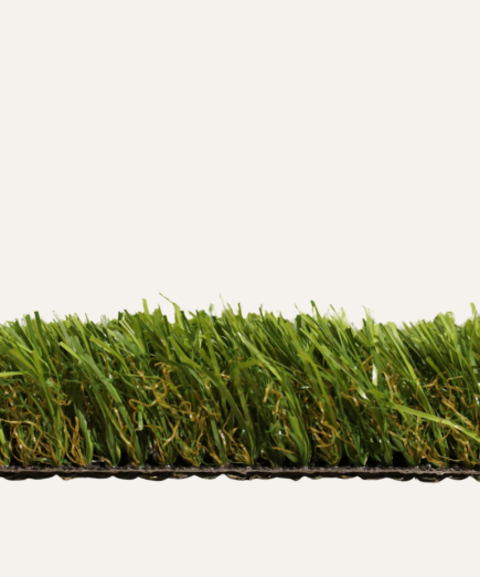 Césped artificial de 38 mm de alta densidad con 7 años de garantía, ideal para un acabado natural y duradero.