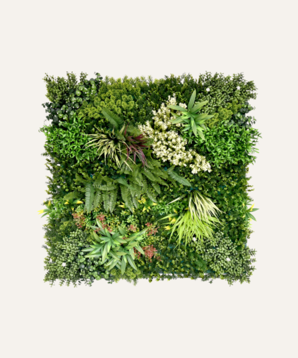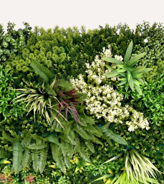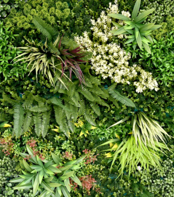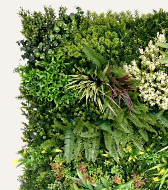 Jardín vertical artificial: verde y moderno, sin riego ni mantenimiento.