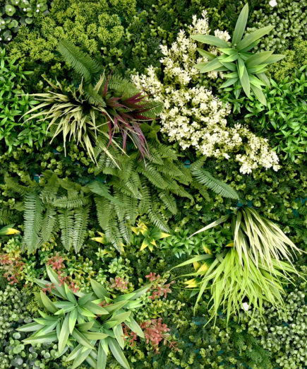 Jardín vertical artificial: verde y moderno, sin riego ni mantenimiento.