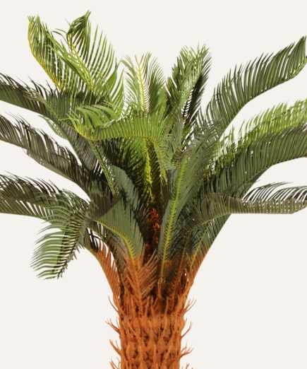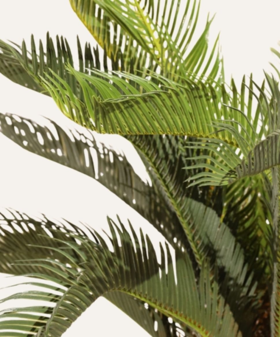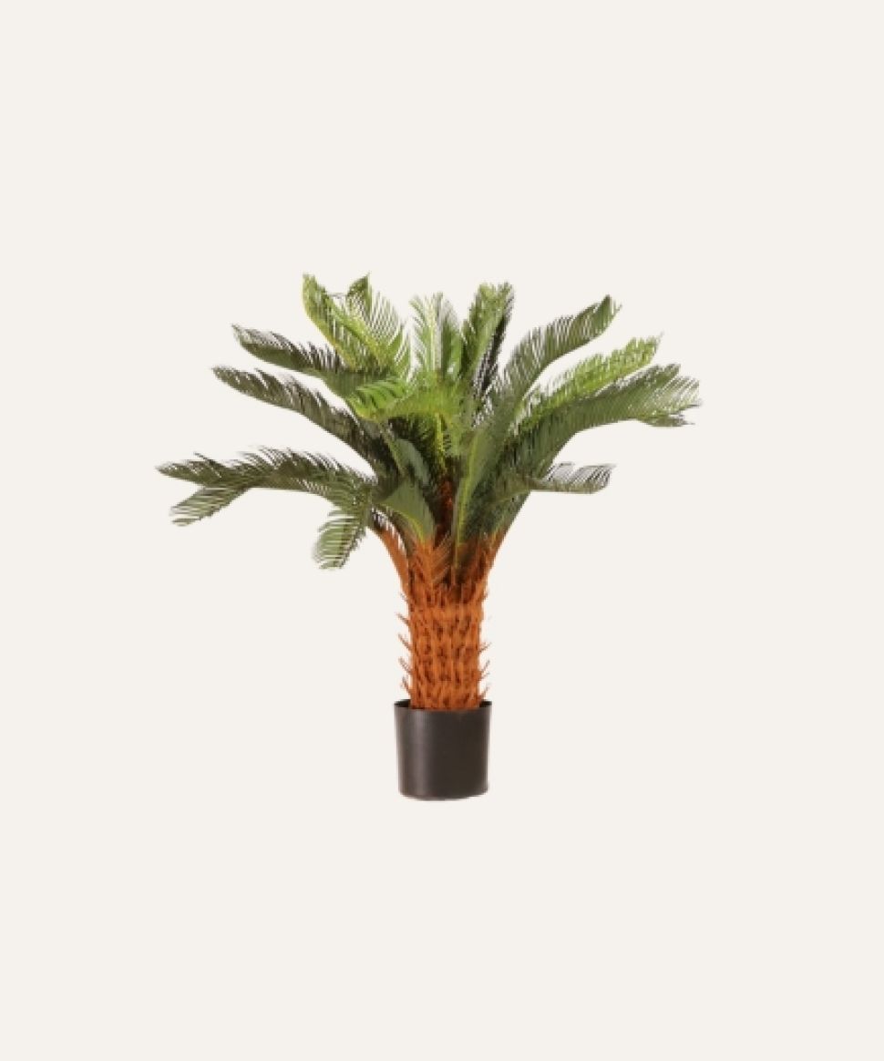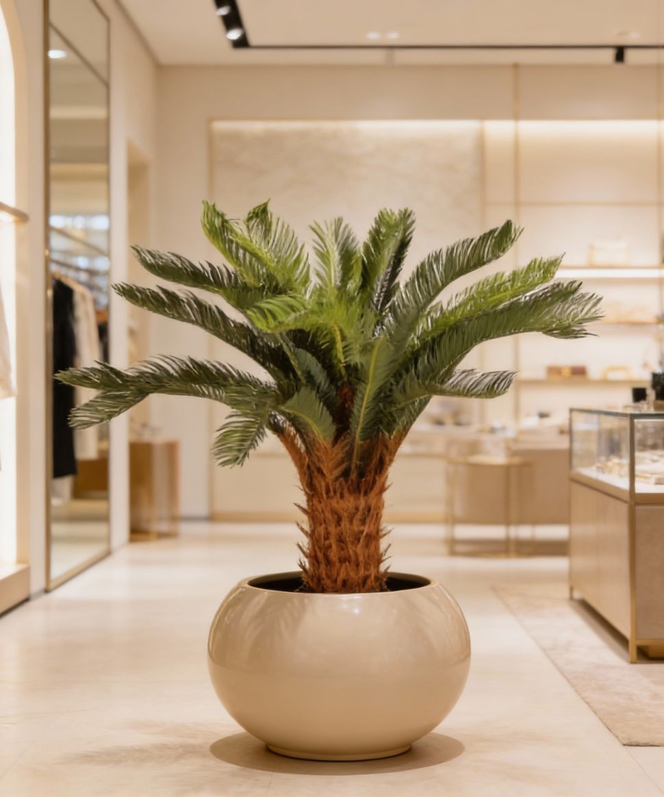La Cyca artificial de 105 cm está diseñada exclusivamente para uso en interiores y ofrece una representación altamente realista gracias a la precisión en el modelado de sus hojas y a su estructura equilibrada. Se presenta en una maceta negra de estilo sobrio, que permite su colocación inmediata o su integración en contenedores decorativos de mayor tamaño según las necesidades del proyecto.
