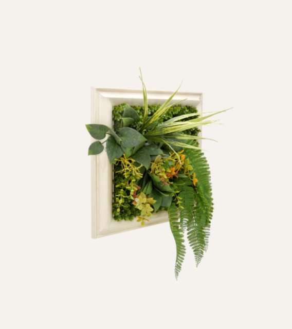 El cuadro vegetal artificial Dama aporta un toque de naturaleza y frescura sin necesidad de mantenimiento.
