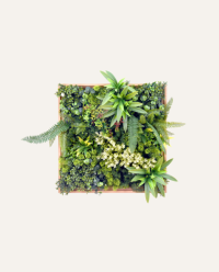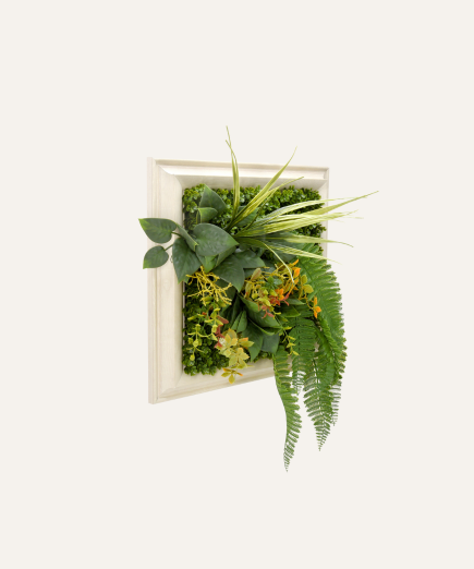 Evita químicos fuertes: No uses productos de limpieza agresivos, ya que pueden dañar el color y el material del cuadro vegetal.