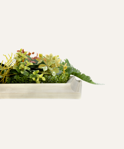 El cuadro vegetal artificial Dama es una pieza decorativa sofisticada que mide 33×33 cm, ideal para aquellos rincones que necesitan un toque de verde sin ocupar demasiado espacio. Combina de manera armoniosa diferentes tipos de hojas y plantas que reproducen la belleza de la naturaleza, creando un efecto fresco y acogedor en cualquier ambiente. Su diseño versátil permite colocarlo en paredes, estanterías o incluso sobre mesas, aportando vida y estilo sin necesidad de cuidados. Perfecto para hogares, oficinas o espacios comerciales, el cuadro Dama ofrece la sensación de naturaleza viva con la comodidad de no requerir riego ni mantenimiento, convirtiéndose en una elección práctica y elegante para quienes buscan decorar con personalidad y buen gusto.