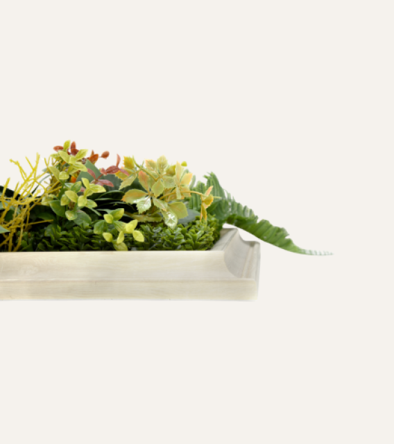 El cuadro vegetal artificial Dama es una pieza decorativa sofisticada que mide 33×33 cm, ideal para aquellos rincones que necesitan un toque de verde sin ocupar demasiado espacio. Combina de manera armoniosa diferentes tipos de hojas y plantas que reproducen la belleza de la naturaleza, creando un efecto fresco y acogedor en cualquier ambiente. Su diseño versátil permite colocarlo en paredes, estanterías o incluso sobre mesas, aportando vida y estilo sin necesidad de cuidados. Perfecto para hogares, oficinas o espacios comerciales, el cuadro Dama ofrece la sensación de naturaleza viva con la comodidad de no requerir riego ni mantenimiento, convirtiéndose en una elección práctica y elegante para quienes buscan decorar con personalidad y buen gusto.