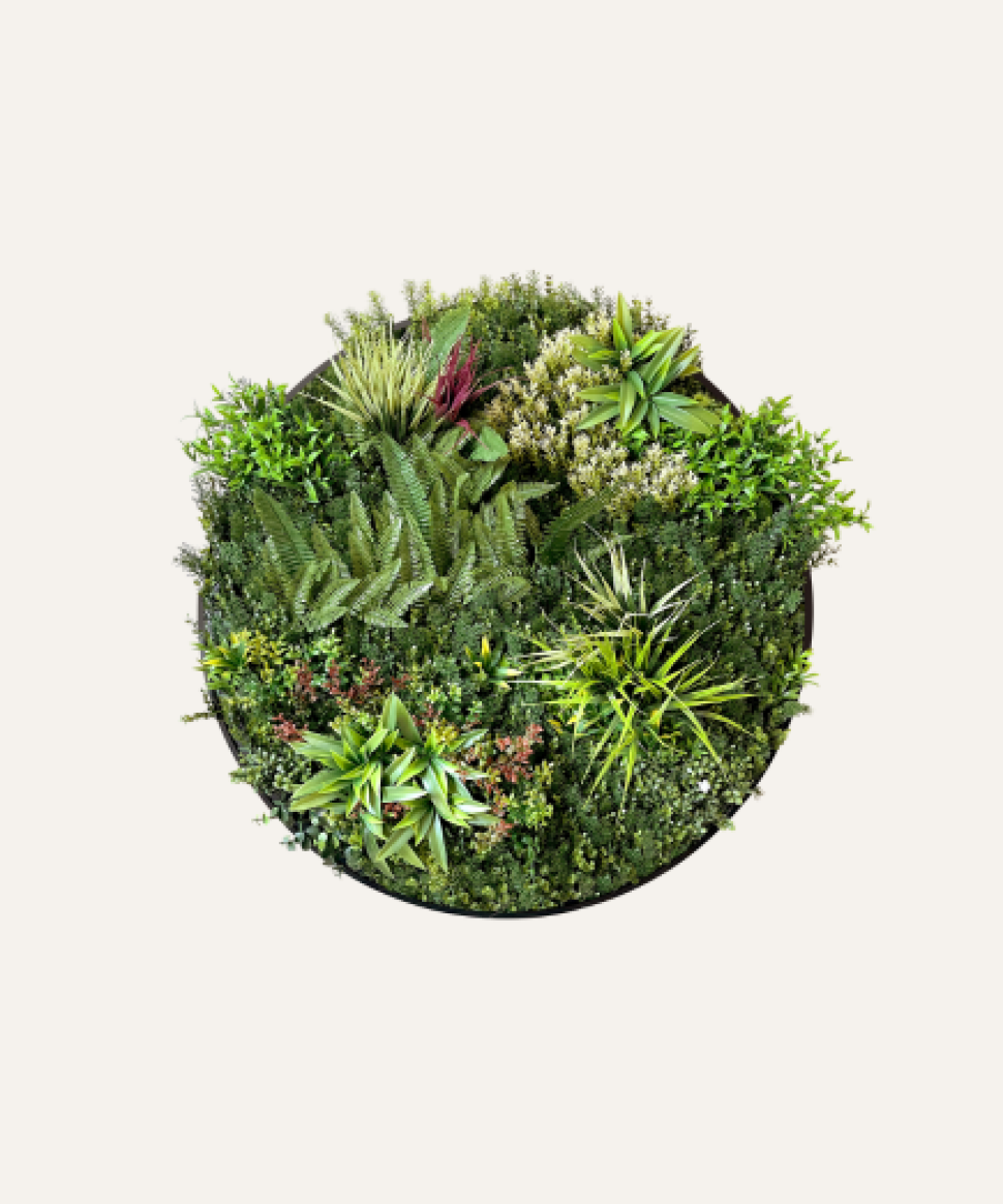 Evita químicos fuertes: No uses productos de limpieza agresivos, ya que pueden dañar el color y el material del cuadro vegetal.