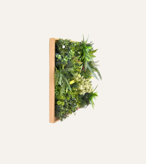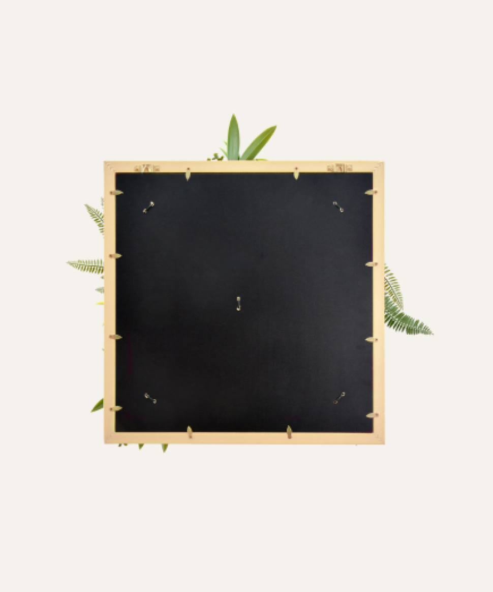 Evita químicos fuertes: No uses productos de limpieza agresivos, ya que pueden dañar el color y el material del cuadro vegetal.