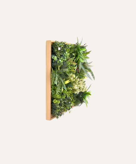 Evita químicos fuertes: No uses productos de limpieza agresivos, ya que pueden dañar el color y el material del cuadro vegetal.