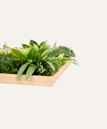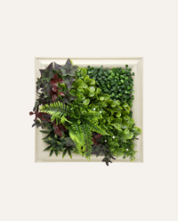 El cuadro vegetal artificial Dino de 50×50 cm aporta un toque de verde profesional en formato compacto, combinando plantas y hojas de apariencia natural en una pieza versátil que mejora la estética de recepciones, oficinas y espacios comerciales sin requerir mantenimiento ni recursos adicionales.