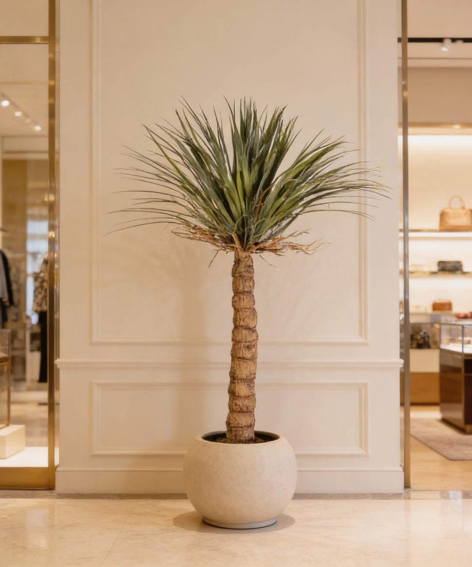 La Dracena tropical artificial de 150 cm, diseñada para uso exclusivo en interiores, presenta un follaje abundante y de acabado realista que aporta un estilo exótico y contemporáneo a cualquier espacio profesional. Su estructura resistente y libre de mantenimiento garantiza una presencia decorativa estable, uniforme y duradera, lo que la convierte en una solución ideal para hoteles, oficinas, comercios y proyectos contract que requieren vegetación estética de alta calidad sin los costes asociados al cuidado de plantas naturales.