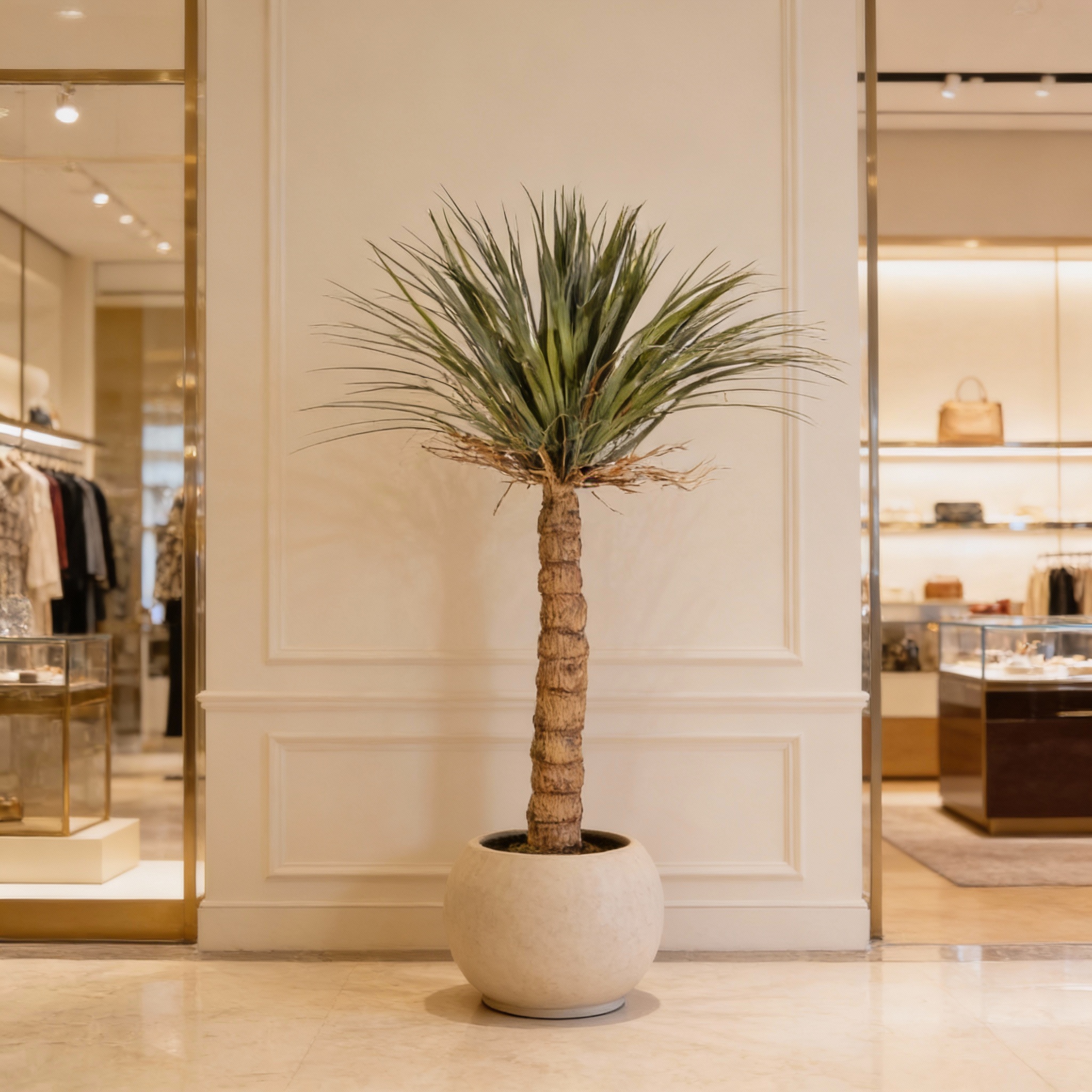 La Dracena tropical artificial de 150 cm, diseñada para uso exclusivo en interiores, presenta un follaje abundante y de acabado realista que aporta un estilo exótico y contemporáneo a cualquier espacio profesional. Su estructura resistente y libre de mantenimiento garantiza una presencia decorativa estable, uniforme y duradera, lo que la convierte en una solución ideal para hoteles, oficinas, comercios y proyectos contract que requieren vegetación estética de alta calidad sin los costes asociados al cuidado de plantas naturales.