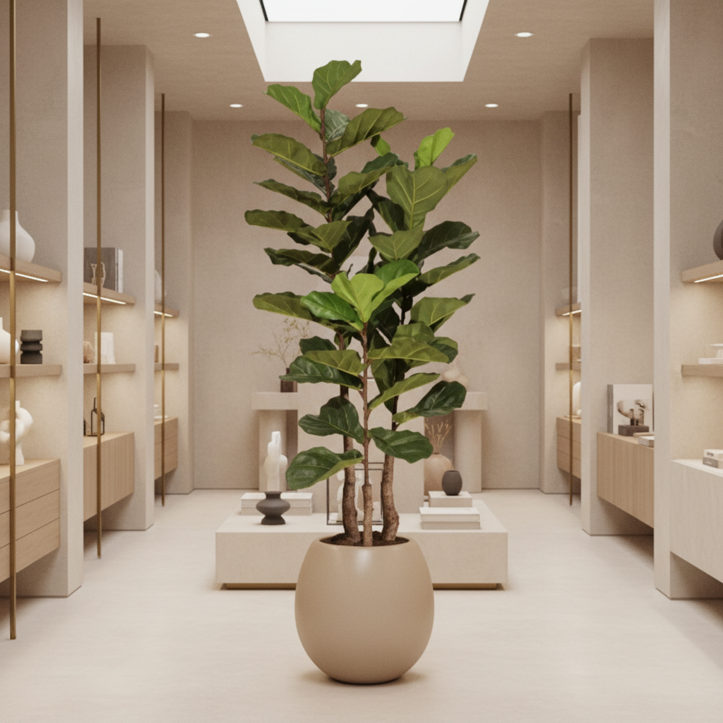 Ficus Lyrata artificial de 135 cm para interior, con acabado realista y diseño profesional, ideal para proyectos corporativos y contract.