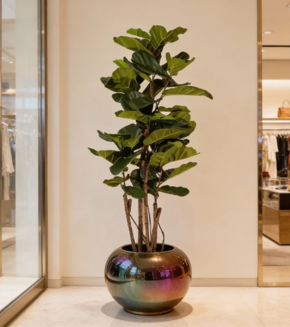 El Ficus Lyrata artificial de 180 cm, diseñado para uso exclusivo en interiores, ofrece un follaje amplio y realista que aporta elegancia, verticalidad y presencia a cualquier espacio profesional. Su estructura robusta y libre de mantenimiento garantiza una solución decorativa duradera, uniforme y visualmente impactante, ideal para hoteles, oficinas, comercios y proyectos contract que requieren vegetación de alta calidad sin los costes ni cuidados asociados a plantas naturales.