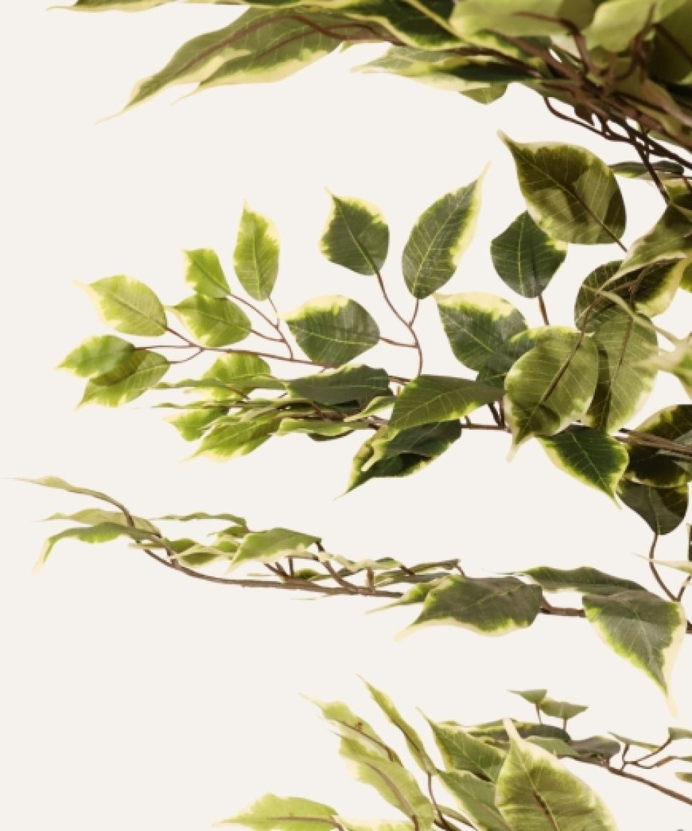 El Ficus matizado artificial de 180 cm, diseñado para uso exclusivo en interiores, combina un follaje de tonos variados con un acabado realista que aporta profundidad, sofisticación y presencia a cualquier espacio profesional. Su estructura resistente y libre de mantenimiento garantiza durabilidad y uniformidad estética, convirtiéndolo en una solución ideal para hoteles, oficinas, comercios y proyectos contract que buscan integrar vegetación decorativa de alta calidad sin los costes asociados al cuidado de plantas naturales.