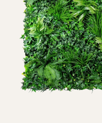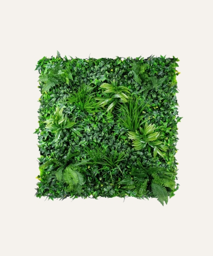El jardín vertical artificial de 100×100 cm es una solución decorativa premium diseñada para proyectos profesionales que buscan impacto visual inmediato sin costes de mantenimiento. Su composición de follaje sintético de alta densidad ofrece un aspecto natural y estable, adecuado para instalaciones en interior y exterior.