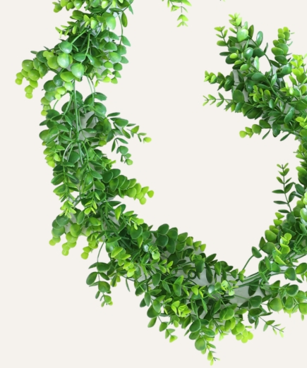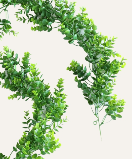 Ideal para hoteles, oficinas, comercios y proyectos contract, la guirnalda de eucalipto artificial combina funcionalidad y estética, creando ambientes acogedores y visualmente atractivos.