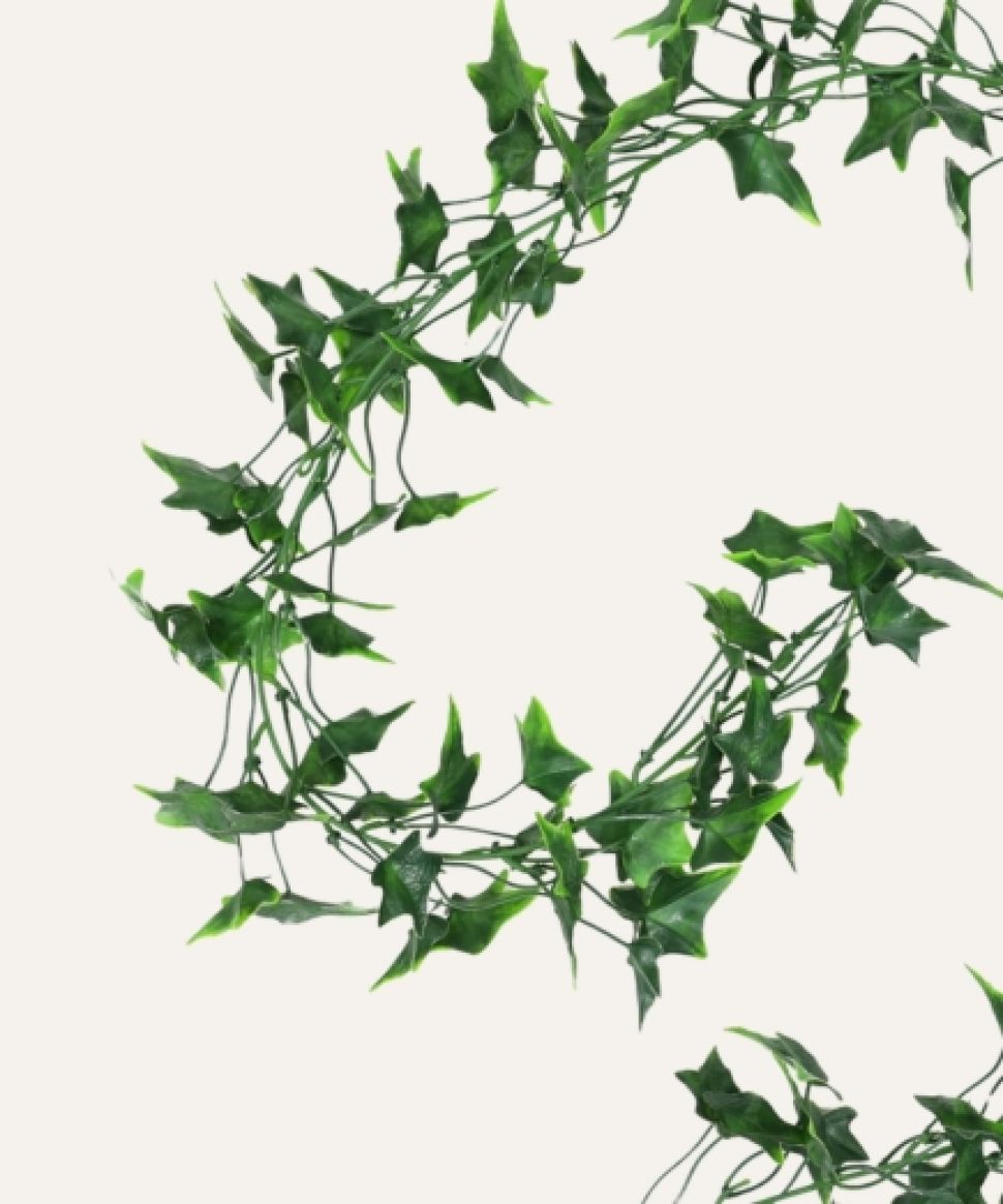 La guirnalda de hiedra común artificial, apta para interiores y exteriores, aporta un toque verde vibrante que transforma cualquier ambiente sin necesidad de cuidados. Su follaje abundante, flexible y con un acabado sorprendentemente realista garantiza una estética natural y envolvente, perfecta para crear ambientes acogedores o dar un plus decorativo a zonas de paso.