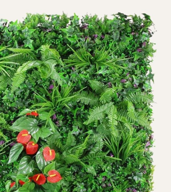 Jardín vertical artificial: verde y moderno, sin riego ni mantenimiento.