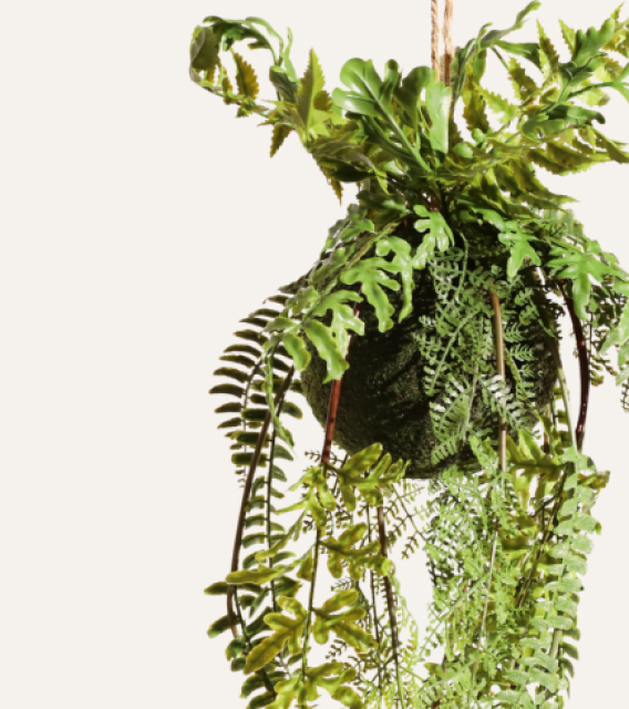 El Helecho Colgante de 65 cm combina frondas realistas y cuerda de yute, aportando frescura y un toque natural a cualquier espacio.
