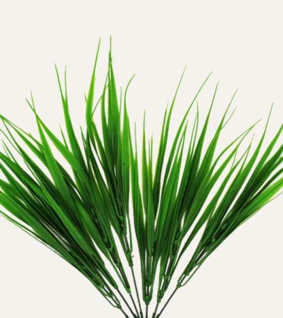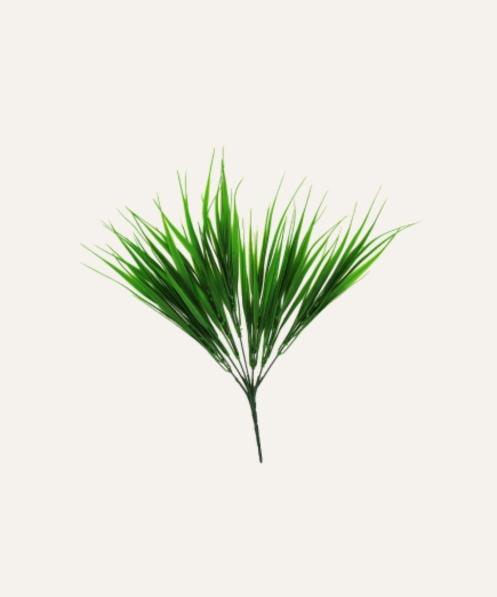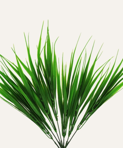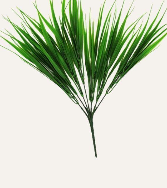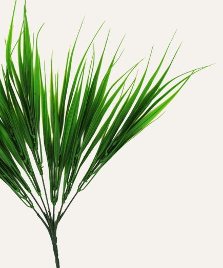 La hierba de río artificial es un elemento decorativo versátil, diseñado para aportar un toque natural y fresco a espacios profesionales. Su follaje fino y flexible, de acabado realista, recrea la apariencia de la vegetación ribereña, ofreciendo textura y movimiento que enriquecen cualquier ambiente interior o exterior protegido.
