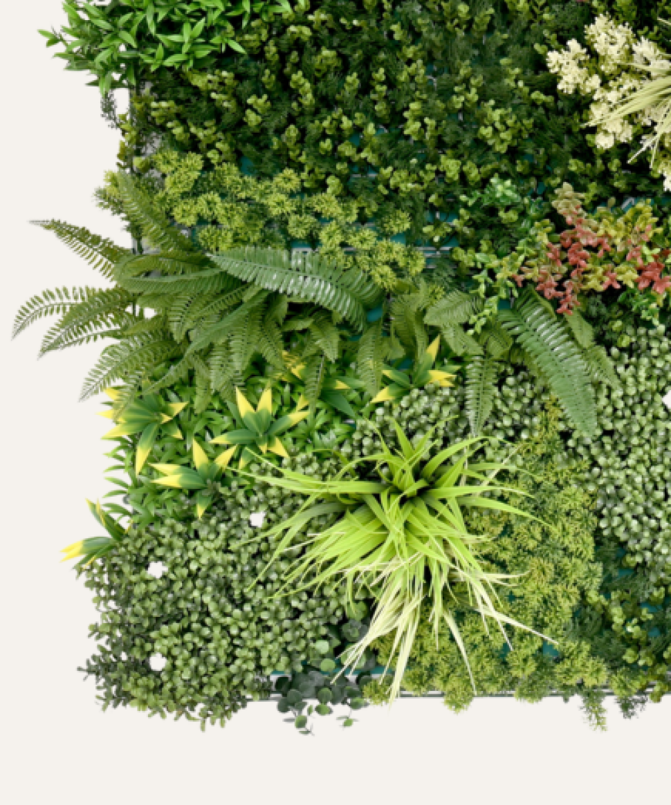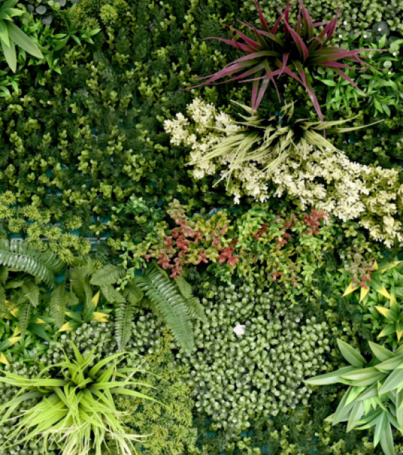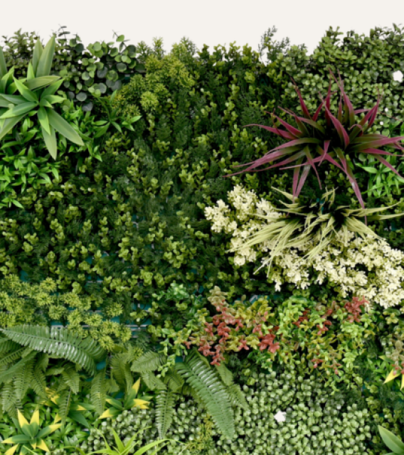Jardín vertical artificial: verde y moderno, sin riego ni mantenimiento.