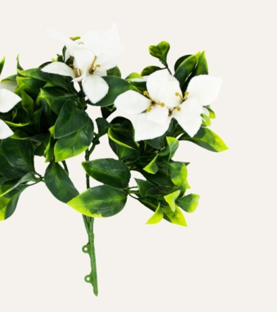 Jazmín flor blanca artificial, realista y resistente, ideal para decoración profesional en interiores y exteriores.