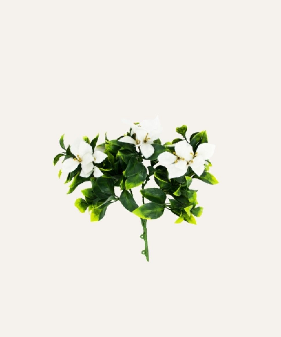 Su estructura resistente permite mantener la forma y caída natural de la planta, adaptándose a múltiples aplicaciones en interiores y exteriores. Libre de mantenimiento, el jazmín flor blanca artificial es una solución duradera y estética para hoteles, oficinas, comercios y proyectos contract que buscan vegetación decorativa de alta calidad sin los cuidados asociados a plantas naturales.