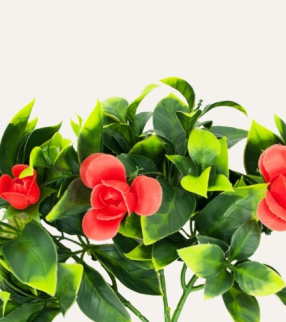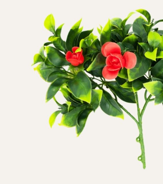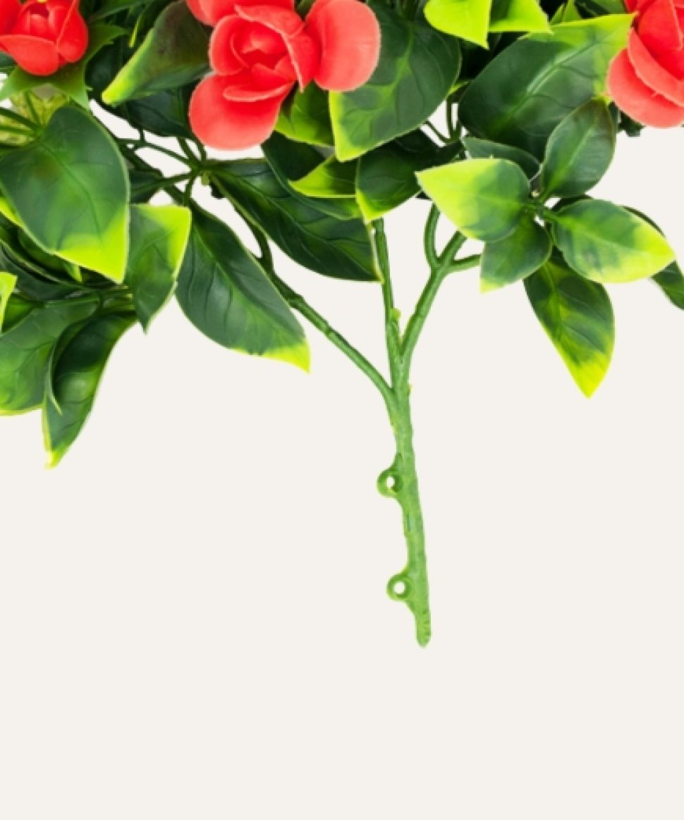 Su estructura resistente permite mantener la forma y caída natural de la planta, adaptándose a múltiples aplicaciones en interiores y exteriores. Libre de mantenimiento, el jazmín flor roja artificial es una solución duradera y estética para hoteles, oficinas, comercios y proyectos contract que buscan vegetación decorativa de alta calidad sin los cuidados asociados a plantas naturales.