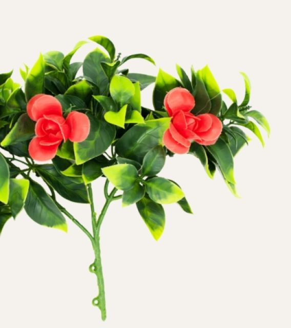 El jazmín flor roja artificial es un elemento decorativo elegante y llamativo, diseñado para aportar color, frescura y un toque floral distintivo a espacios profesionales. Su follaje verde combinado con flores rojas de acabado realista crea una composición vibrante que aporta presencia y sofisticación a cualquier ambiente.