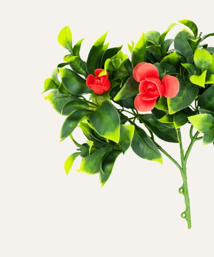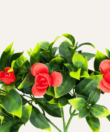 El jazmín flor roja artificial es un elemento decorativo elegante y llamativo, diseñado para aportar color, frescura y un toque floral distintivo a espacios profesionales. Su follaje verde combinado con flores rojas de acabado realista crea una composición vibrante que aporta presencia y sofisticación a cualquier ambiente.