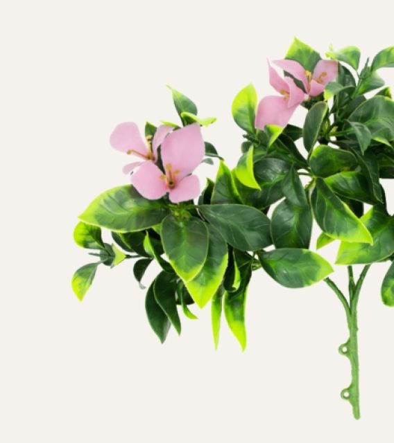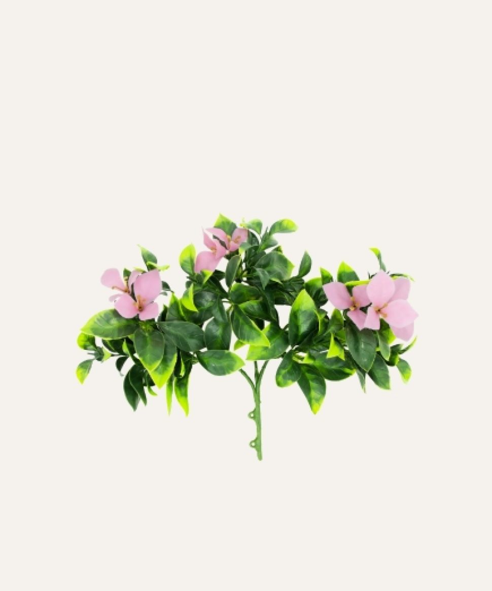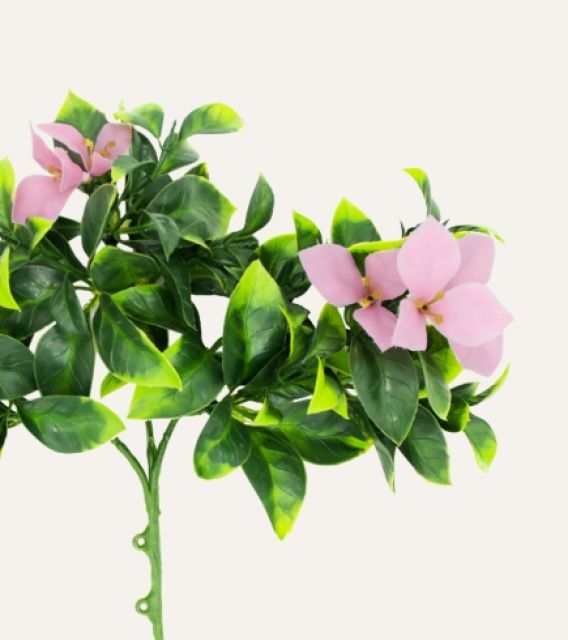 Su estructura resistente permite mantener la forma y caída natural de la planta, adaptándose a múltiples aplicaciones en interiores y exteriores. Libre de mantenimiento, el jazmín flor rosa artificial es una solución duradera y estética para hoteles, oficinas, comercios y proyectos contract que buscan vegetación decorativa de alta calidad sin los cuidados asociados a plantas naturales.