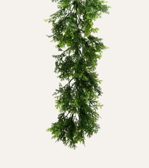 Leylandi colgante artificial, realista y resistente, ideal para decoración profesional en interiores y exteriores protegidos.