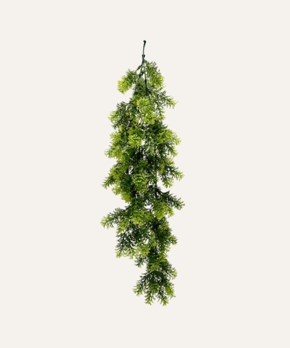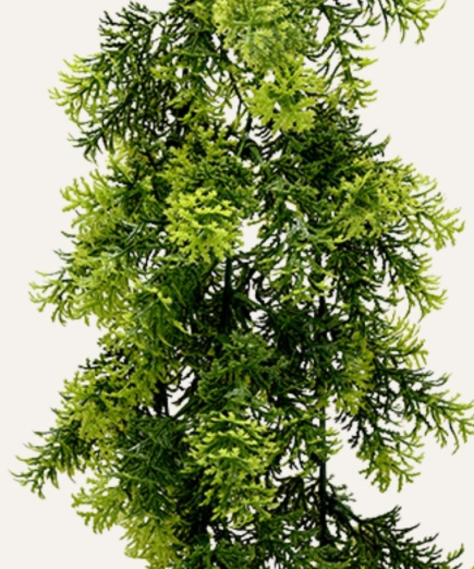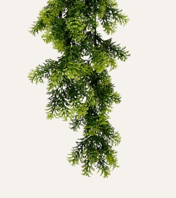 El Leylandi Gold colgante artificial es una solución decorativa de alta calidad, diseñada para aportar luminosidad y un toque natural a espacios profesionales. Su follaje colgante en tonos verdes y dorados, cuidadosamente trabajado, ofrece un acabado realista y elegante que añade profundidad y dinamismo a cualquier ambiente.