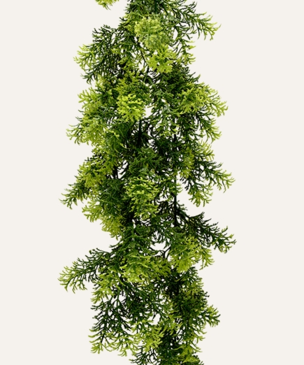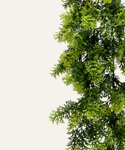 Su estructura flexible y resistente permite una caída uniforme y estable, adaptándose a múltiples aplicaciones en interiores y exteriores protegidos, como pérgolas, paredes, estanterías o zonas de paso. Libre de mantenimiento, el Leylandi Gold colgante artificial es ideal para hoteles, oficinas, comercios y proyectos contract que buscan una vegetación decorativa diferenciadora y duradera sin los cuidados asociados a plantas naturales.
