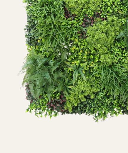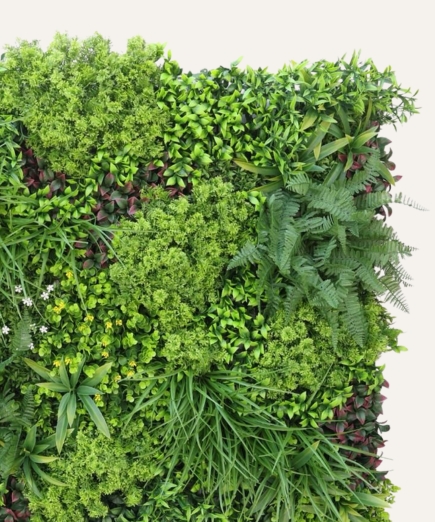 El jardín vertical artificial de 100×100 cm es una solución decorativa premium diseñada para proyectos profesionales que buscan impacto visual inmediato sin costes de mantenimiento. Su composición de follaje sintético de alta densidad ofrece un aspecto natural y estable, adecuado para instalaciones en interior y exterior.