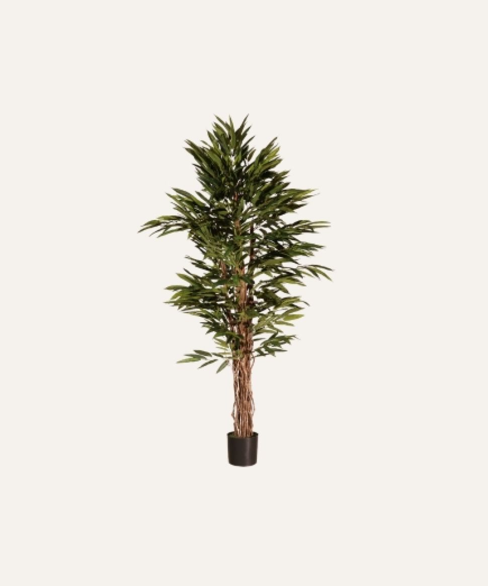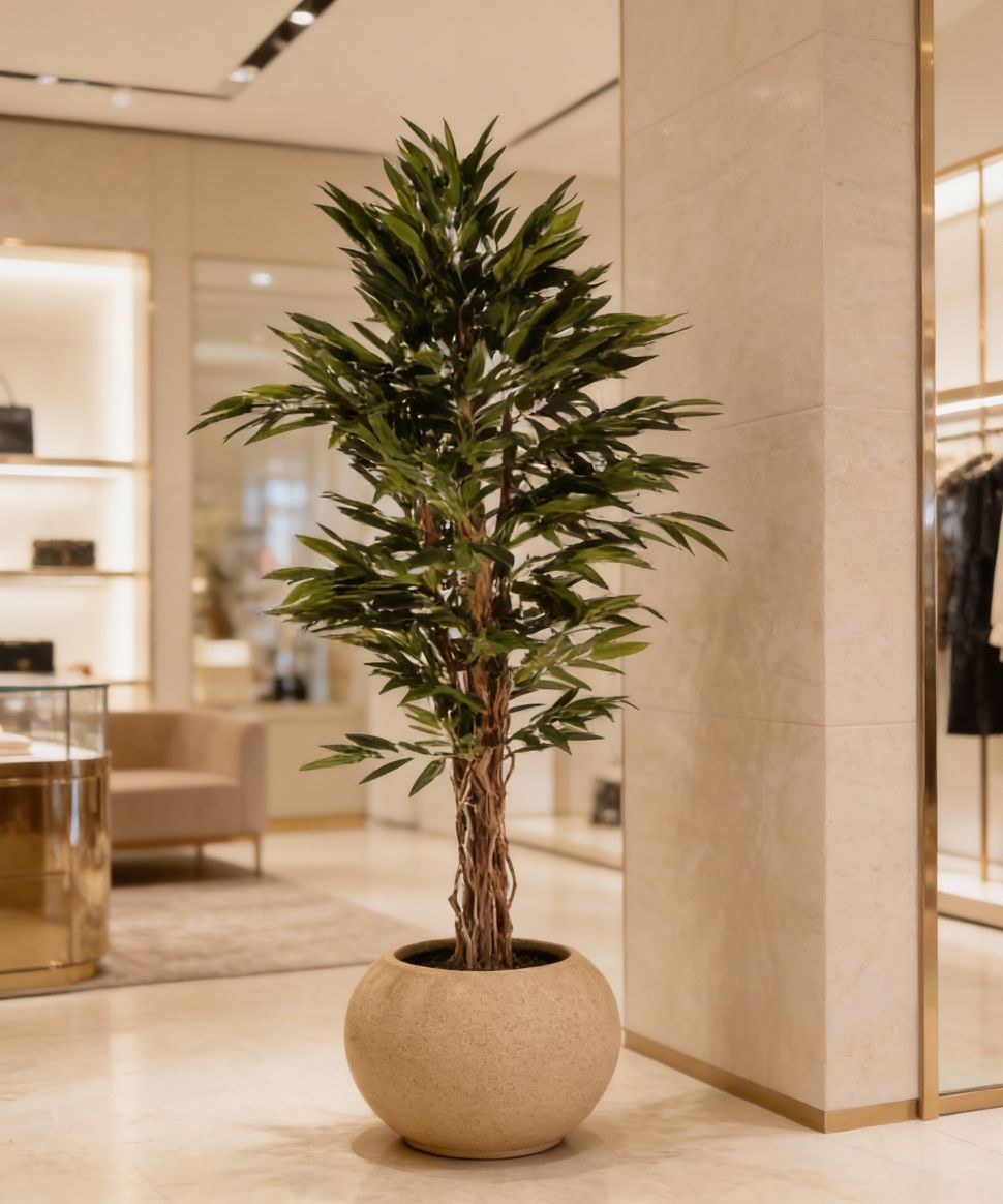 La Longifolia artificial de 180 cm, diseñada para uso exclusivo en interiores, presenta un follaje alargado y estilizado de acabado realista que aporta verticalidad, frescura y elegancia a cualquier espacio profesional. Su estructura robusta y libre de mantenimiento garantiza durabilidad y uniformidad estética, convirtiéndola en una solución ideal para hoteles, oficinas, comercios y proyectos contract que requieren vegetación decorativa de alta calidad sin los costes asociados al cuidado de plantas naturales.